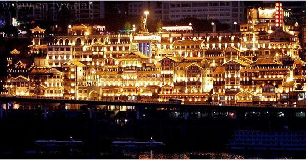 洪崖洞以最具巴渝传统建筑特色的“吊脚楼”风貌为主体,依山就势,沿江而建,让解放碑直达江滨。外来游客可在这里游吊脚群楼、观洪崖滴翠,逛山城老街、赏巴渝文化,品山城火锅、看两江汇流、玩不夜风情。