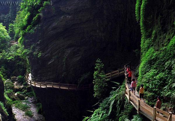 龙水峡地缝风景区位于武隆县仙女山镇境内,距县城15公里。地缝是几千万年前造山运动而形成。因与天生三桥孪生发育在龙水峡内,壁陡峡深,犹如地球上的一条裂缝而得名,是武隆境内又一岩溶地质奇观。