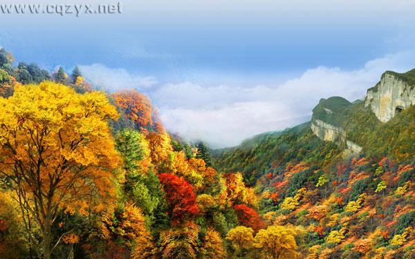 金佛山:金佛山是国家5A级风景区,四季景色各异春是花的海洋、夏是避暑天堂、秋是满山 红叶、冬是冰雪世界。金佛山山势雄奇秀丽,景色深秀迷人。