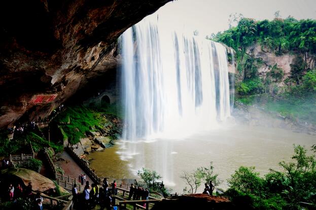 而位于万州甘宁镇的青龙大瀑布,处于深谷绝壁上,宽151米,高64.5米。倾斜而下的大瀑布走向呈弓形,如同一张接天入地的巨大水帘。石亨